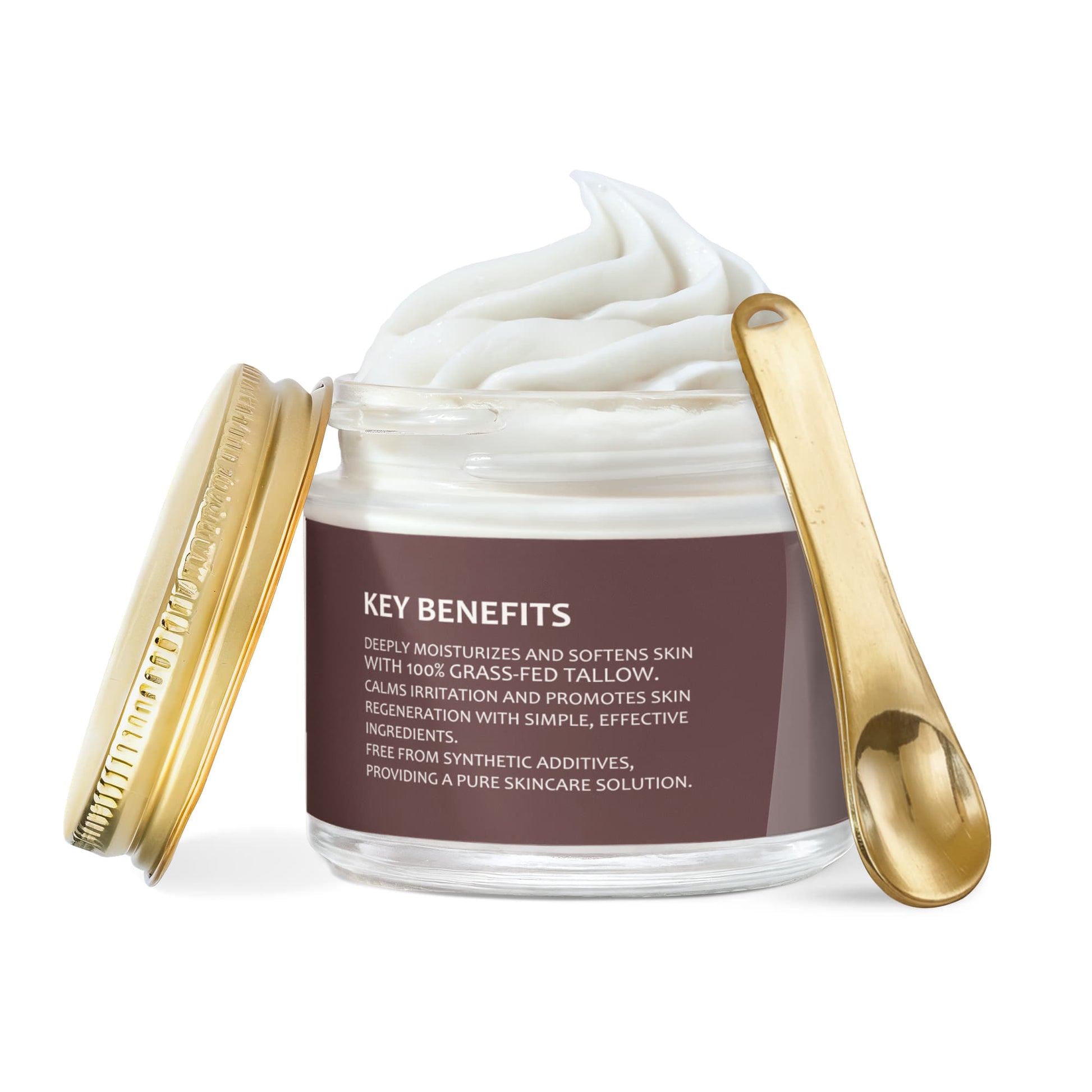 Grass-Fed Tallow - Rich in skin-compatible fatty acids and vitamins A, D, E, and K, it deeply nourishes and repairs the skin, restoring moisture balance, improving elasticity, and strengthening the skin barrier for long-lasting hydration.